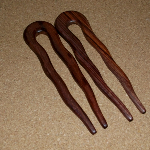 Oriental handmade 2 prong wavy hair fork in Rosewood.