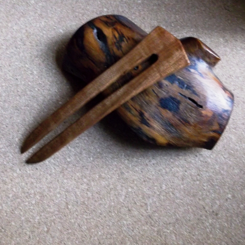 After cutting, shaping, and sanding, the fork was sealed with a UV blocking finish to help prevent fading. Followed by multiple coats of a Tung oil finish to nourish, protect and bring out the beauty of the wood.